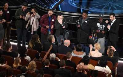 As 33 million people watched on live television, people wearing sweatshirts, shorts and dirty sneakers were received graciously by smiling movie stars in black tie and designer gowns. The celebs had a chance to prepare for the cameras — Leonardo DeCaprio had a stylist flown in from Australia to do his eyebrows, for instance — but the poor tourists didn’t even get a chance to comb their hair.
