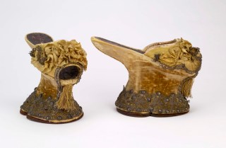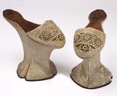Here you see a pair of chopines, a shoe style popular between the 15th and 17th centuries.