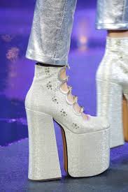 That green pair makes me think of fashion designer Marc Jacobs and his recent penchant for exaggerated platform boots, which might well have been inspired by chopines. Below is an example from the most recent collection.