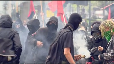 I believe these demonstrators would describe themselves as anarchists. They advertised their May Day plans with banners like the one below.