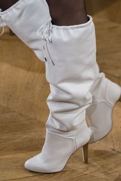Saint Laurent. This tall boot is being marketed in various leather colors, but the shiny silver version has drawn the most attention. If you want a pair, you will need to put your name on a wait list, and then save your money to pay for them. The price is $10,000.