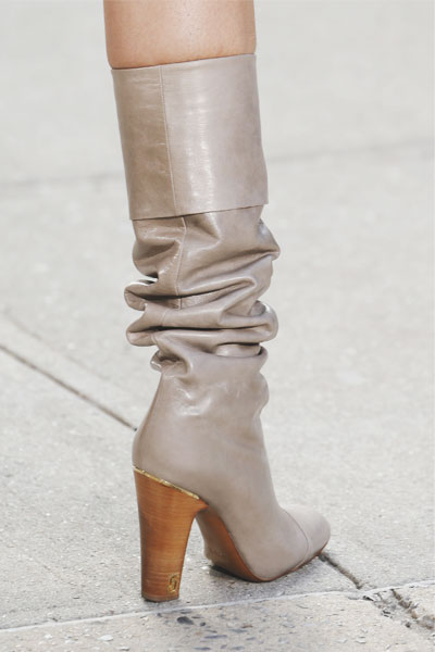 These boots have wrinkled leather shafts. This is a trend that comes and goes and then comes back again. This year it’s back.