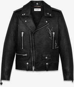 Several years ago, women’s fashion houses began to release a certain type of leather jacket. It had an off-center zipper, two to five zippered pockets, a wide collar with double lapels and snap epaulets on the shoulders.